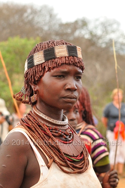 The Hamer women are as fashionable as their men. If men can show off their brave accomplishments through their body scars and mud caps, women of Hamar have the same way to display their braveness and status to the public.