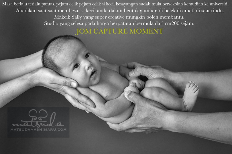 Got my favorite dark grey ash backdrop fixed and I start taking photos of my most best-loved subject … baby!. Yes. I am all geared up for my next learning experience. Learning by doing. My portfolio website is up and running at matsudamashimaru.myportfolio.com, my facebook page is done (jom follow), my spirit is highly motivated for this (am having bad flu right now) and let’s do this Matsuda.